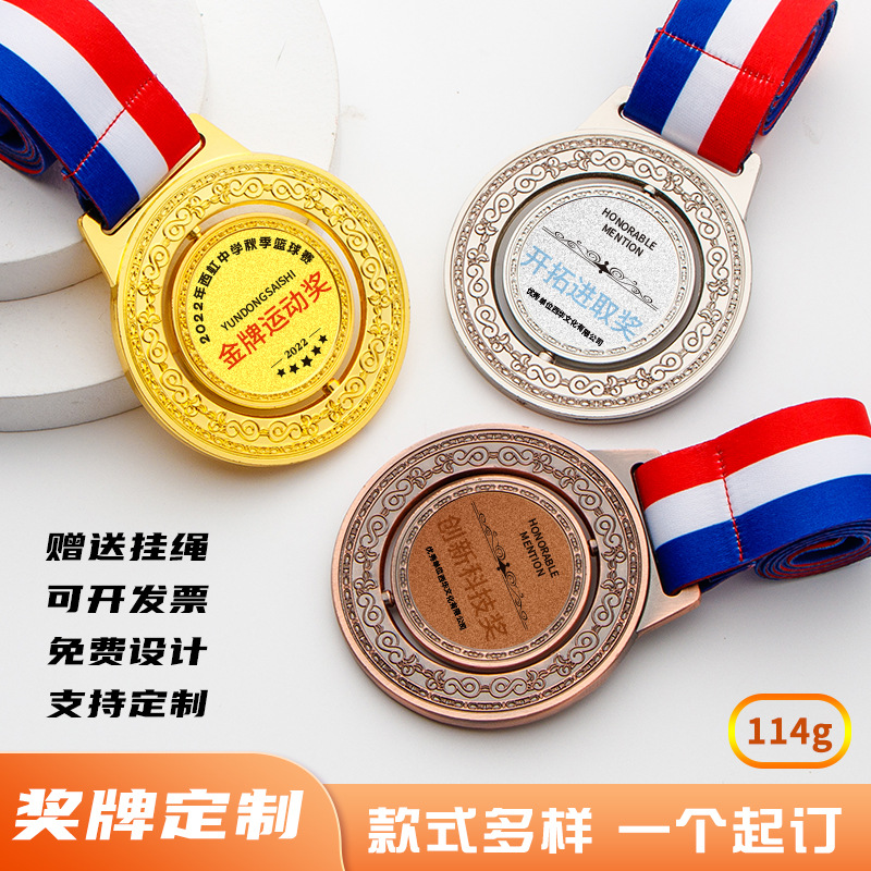 回転式メダルカスタムデザイン70*5mm金銀銅記念牌運動会競技金属記念金メッキ