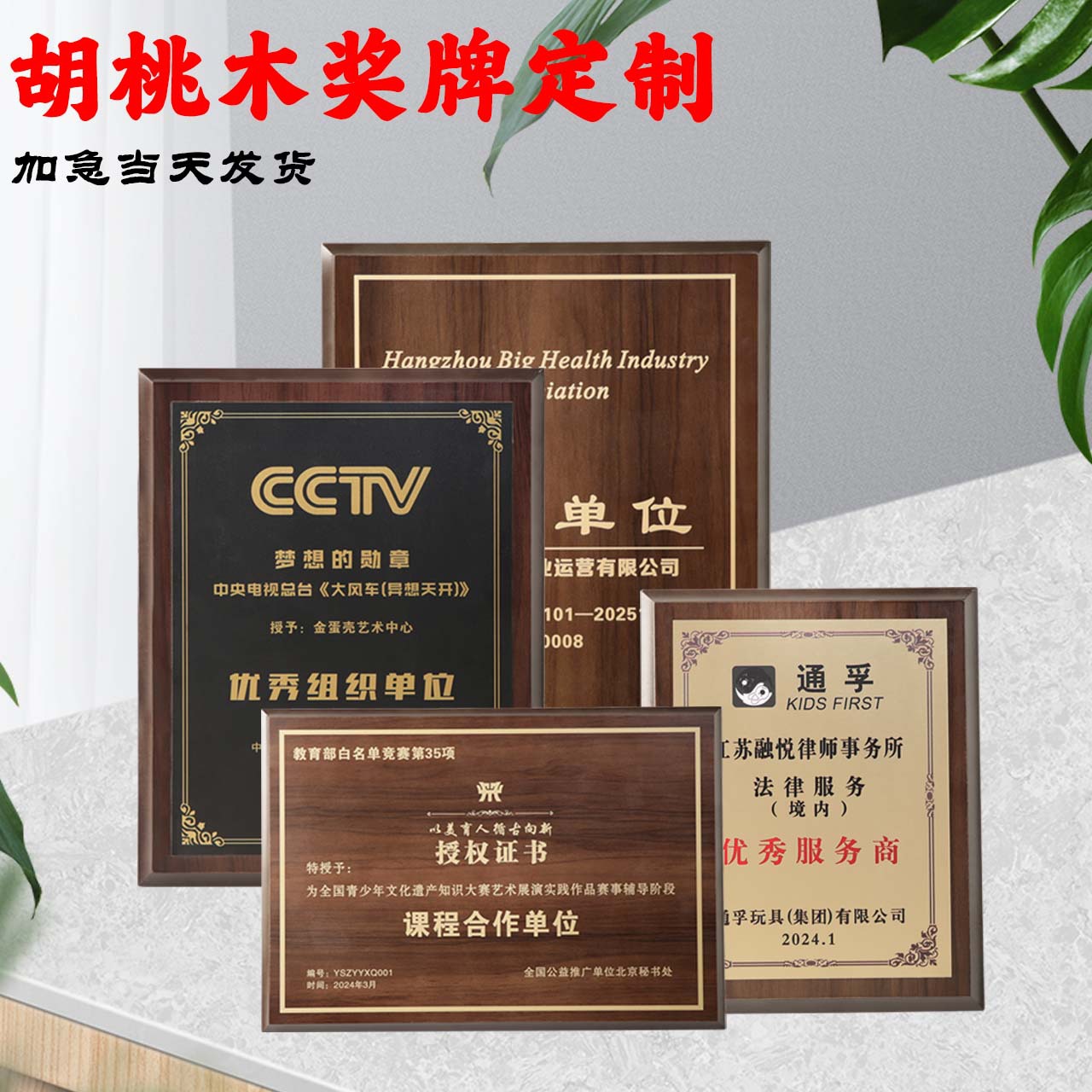 木製メダル胡桃実木加盟石版授権代理店金箔授権牌記念栄誉退職銅メダル