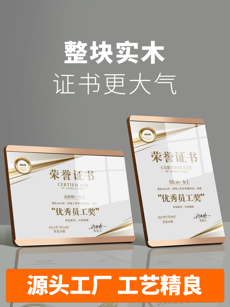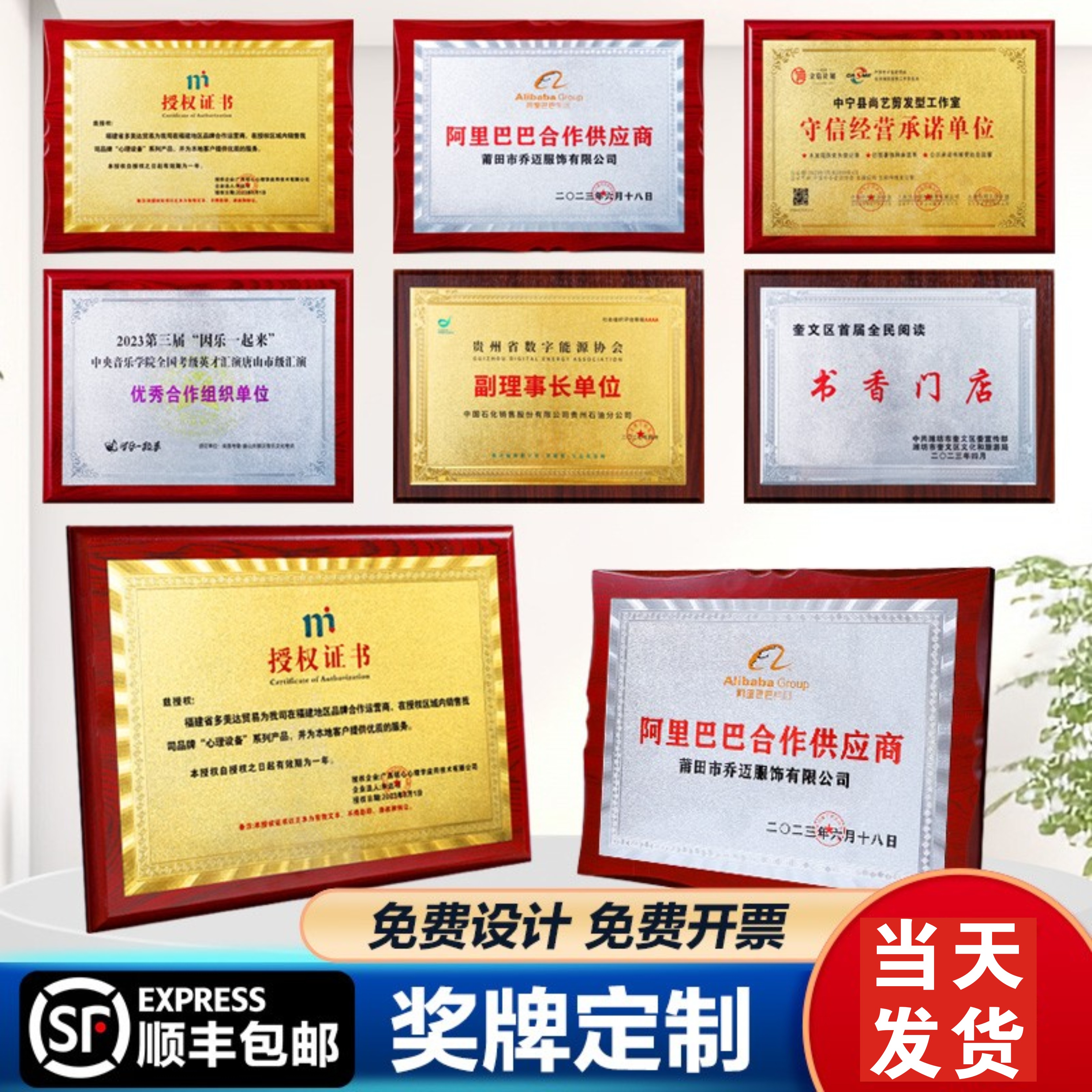 高級実木授権牌栄誉石版金属メダル授賞木製金箔退職記念品銅メダル製作