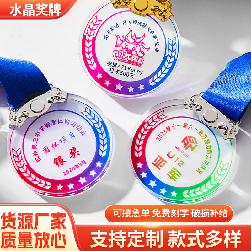 クリスタルカラープリントメダル制作クリエイティブ金メダル子供マラソン大会メダル栄誉記念メダル看板