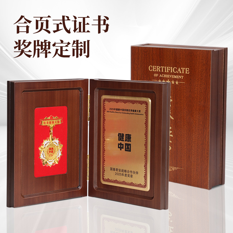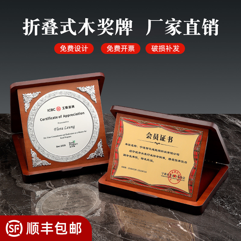 クリエイティブ表彰状 木製折りたたみ式金属メダル カスタムメイド 商会名誉推薦状 感謝状 退職記念品