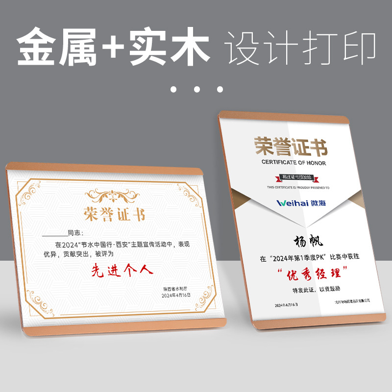 代理加盟擬木胡桃木栄誉証明書実木水晶石版結納書木製栄誉授権メダル