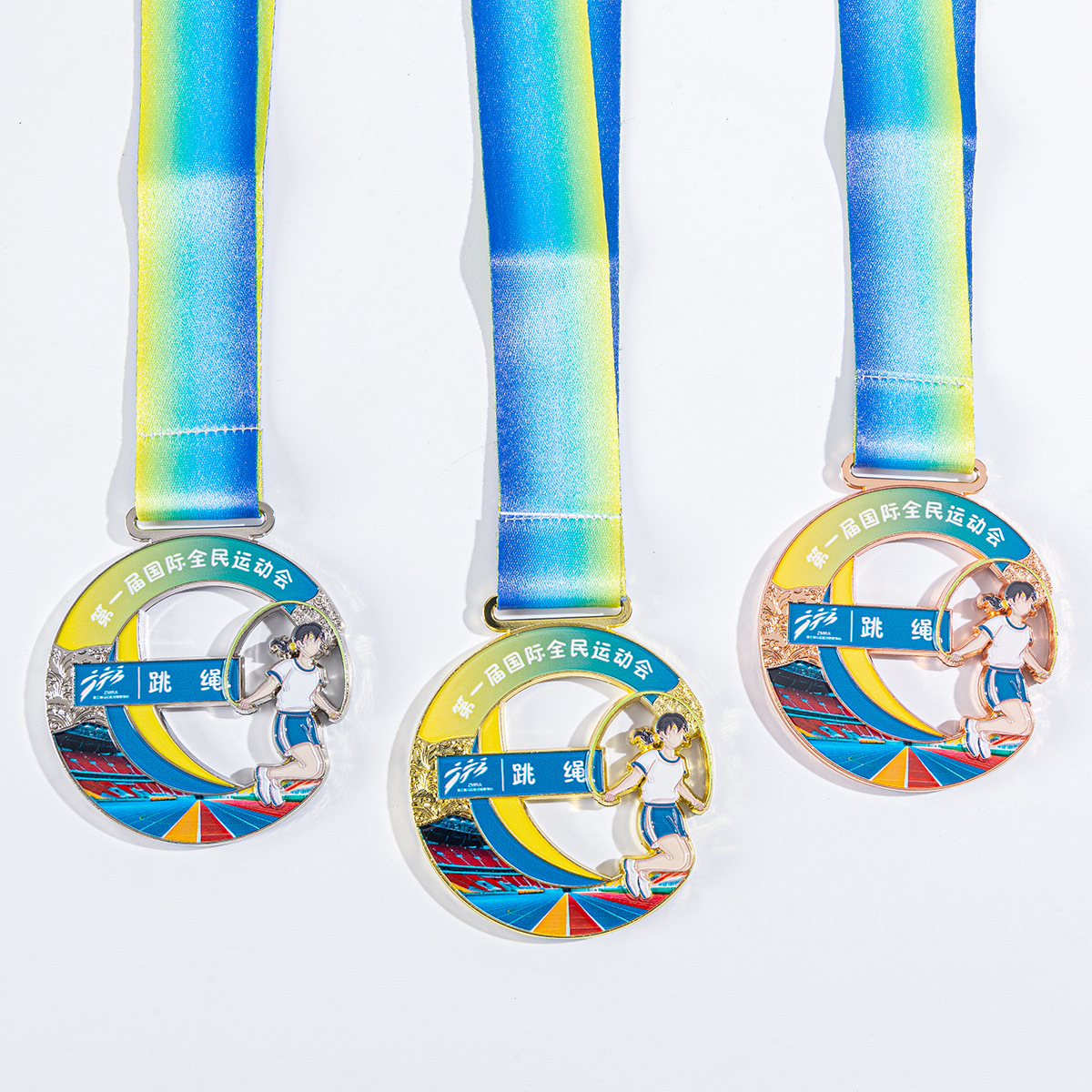 在庫ありの縄跳び競技用メダル、学校運動会記念メダル、幼稚園活動用金属銘板のカスタム製作