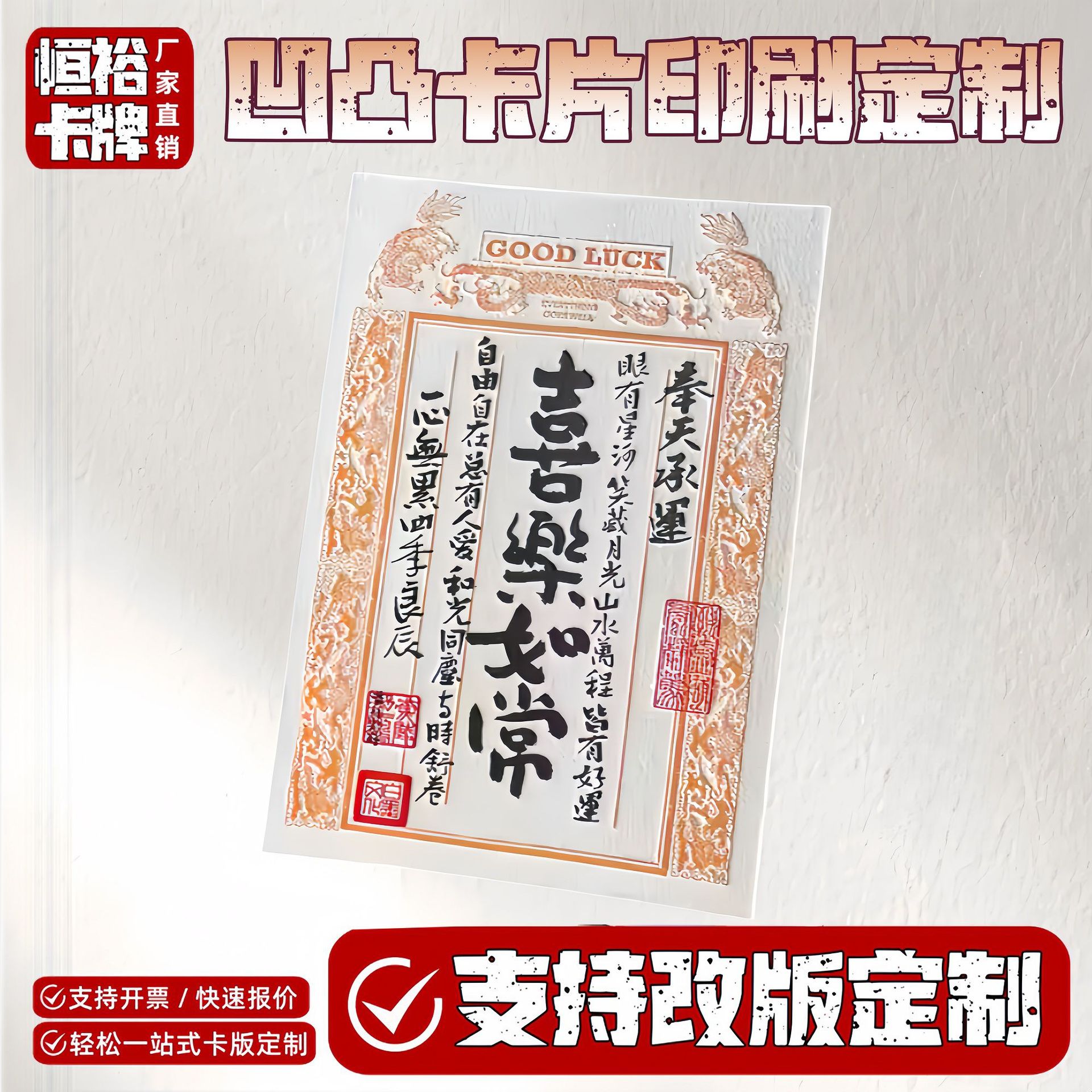 凹凸カード印刷、カスタマイズされた景勝地チェックイン、文化的で創造的なグリーティングカード、ティッシュペーパー、ポストカード、活版印刷、エンボス加工記念カード