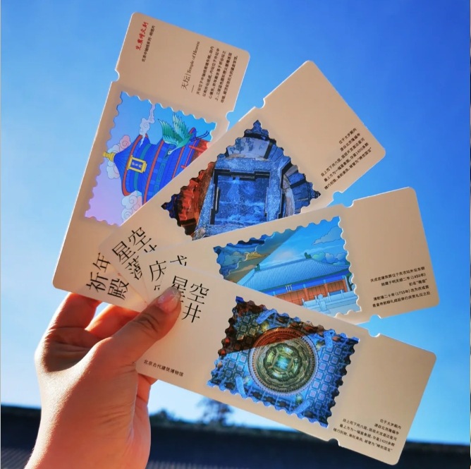 北京手描き透光金箔押しポストカード 長城 故宮博物院 天壇 天安門 風凰池 南銅錐巷公園