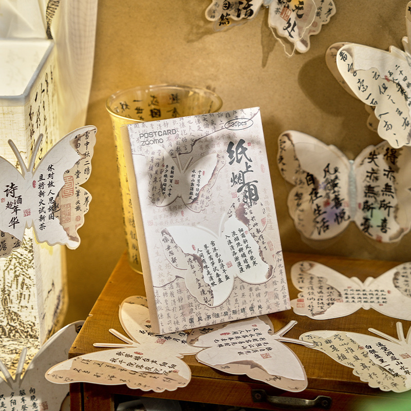 中国式はがき紙上煙雨シリーズレトロ国風書道異形紙カード手帳学生プレゼント