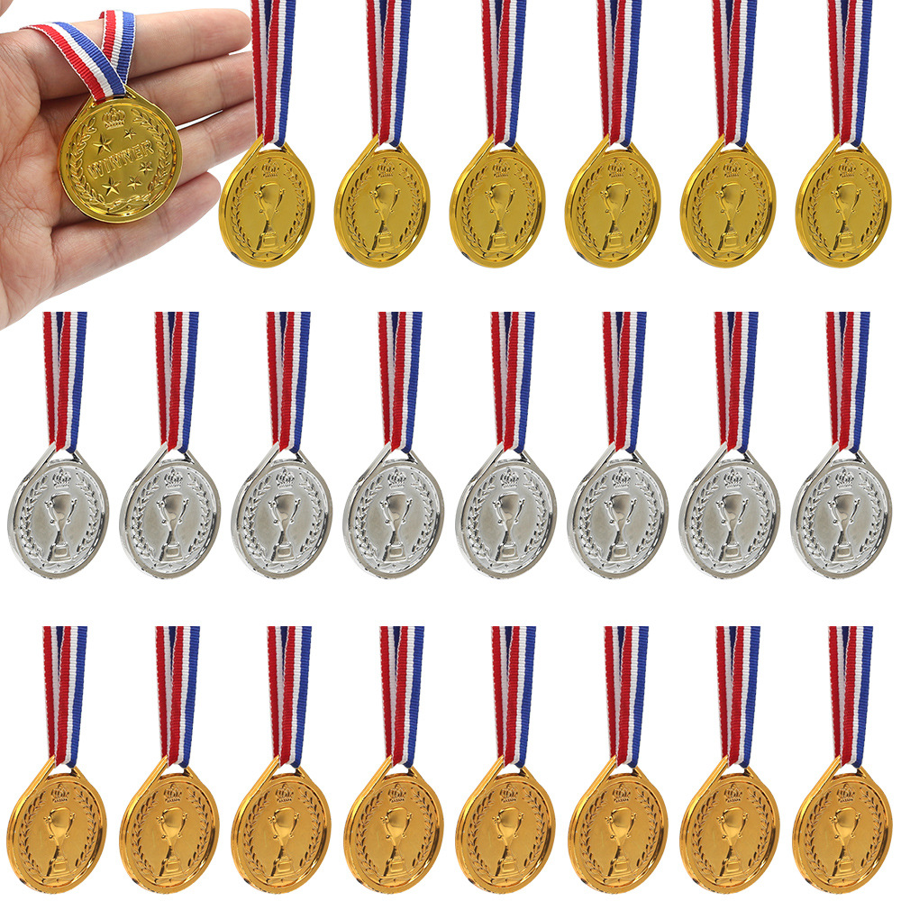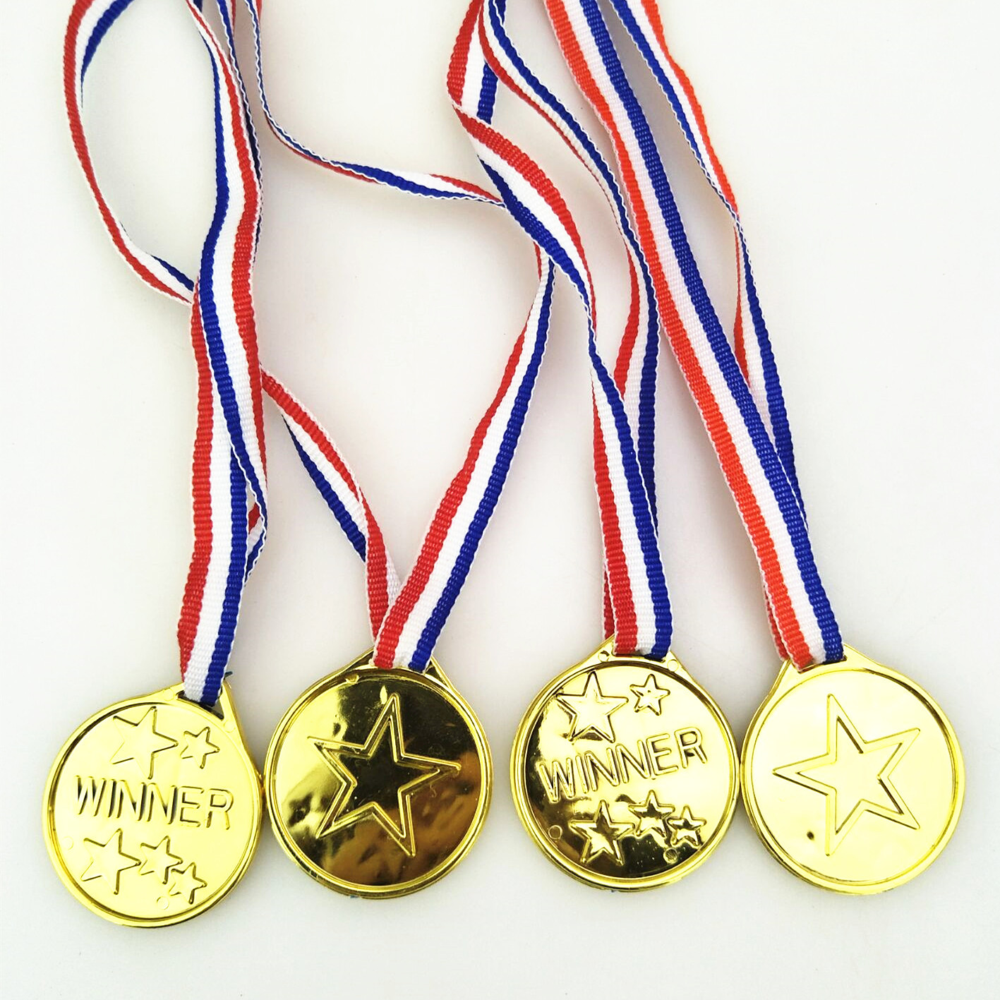 子供のプラスチックのメダルの吊り札のおもちゃのメッキの金色の運動会のメダルのおもちゃのパーティーの贈り物の小さいおもちゃの吊り札