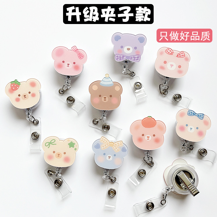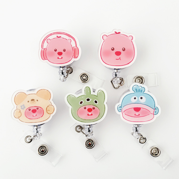 新しい看護師の胸の札は伸縮しやすいです。カラーの熊の多色の漫画の仕事の証明書の胸のカードのクリップを掛けます。