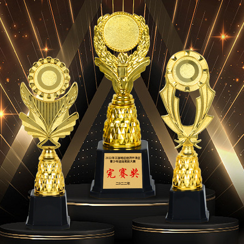 メーカー卸売りプラスチック小トロフィー運動金色公仔トロフィー花札プラスチックトロフィー卸売り金箔印字