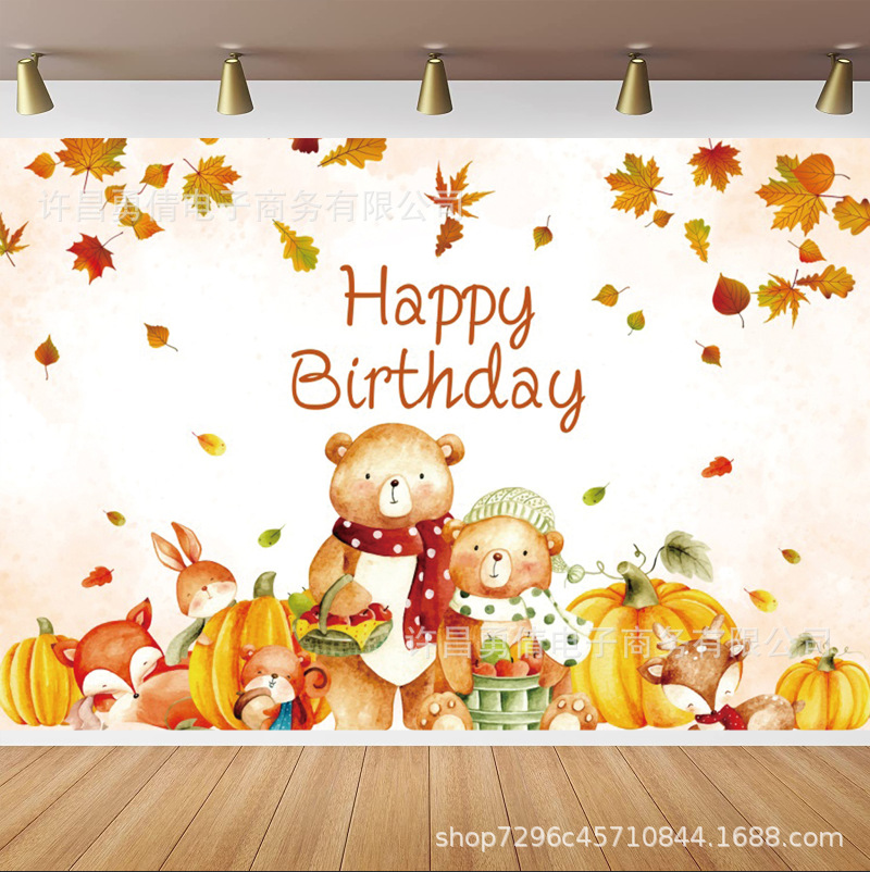アマゾン秋カボチャ動物ベアー子供誕生日背景布リボンパーティー装飾背景布装飾布
