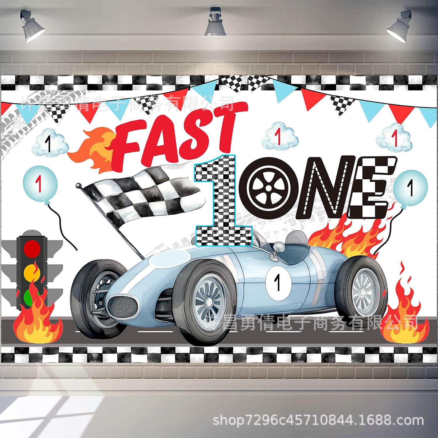 外国貿易クロスボーダー漫画ブルーレースボーイズ1歳誕生日背景布木製バナーパーティー装飾旗ブランケット
