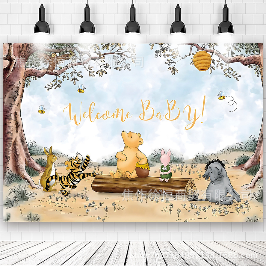 アマゾンtemu热い贩売漫画ビーニーベアー诞生日背景布バナー子供洗礼パーティー装饰バナー