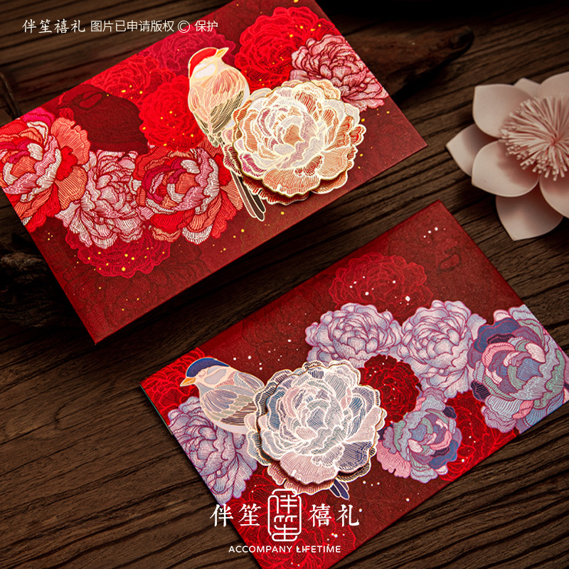 2025結婚専用招待状中国式高級感新婚結婚式喜帖紙招待状結婚披露宴招待状印刷