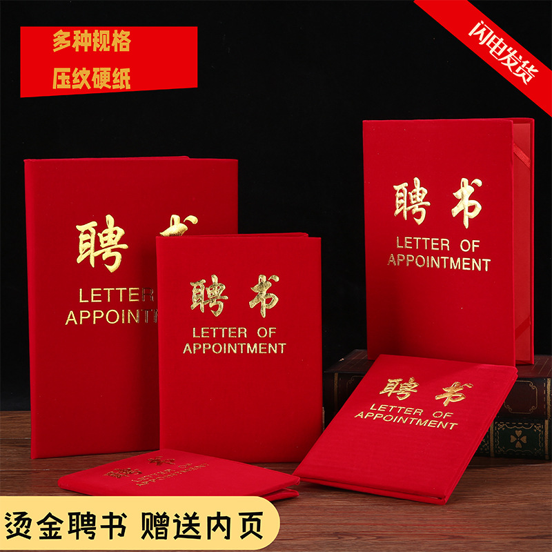スエード任命レターメーカー卸売任命レター内部ページ印刷ホットスタンピング証明書賞シェルはロゴを印刷することができます送料無料