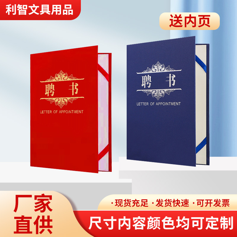 就任状パール光沢マットハードカバー証明書ケース、ブルー箔押しインナーコア証明書印刷、6K8K12K証明書カバー