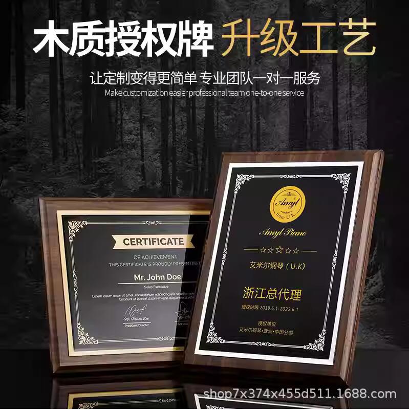 金箔メダル授権牌カスタム栄誉牌金属牌石版看板製作木托銅メダル木質証書授賞