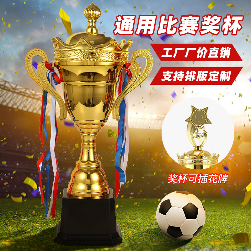 新しい金と銀の銅のサッカーのトロフィーの創意的なサッカーのトロフィーの記念品は花札の公仔のサッカーのトロフィーを組み合わせることができます。
