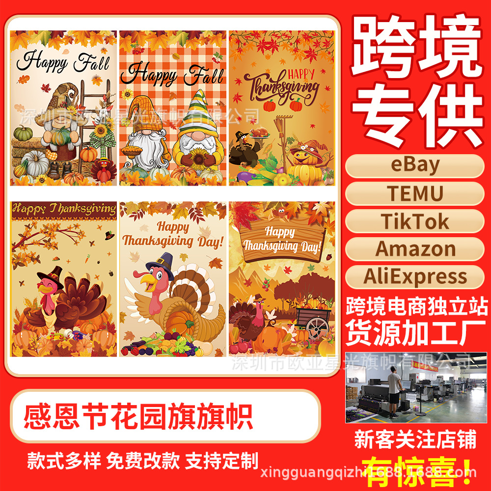 国境を越えた新しい感謝祭花園旗のテーマ屋外装飾感謝祭無顔人形旗はデザインを描くことができる