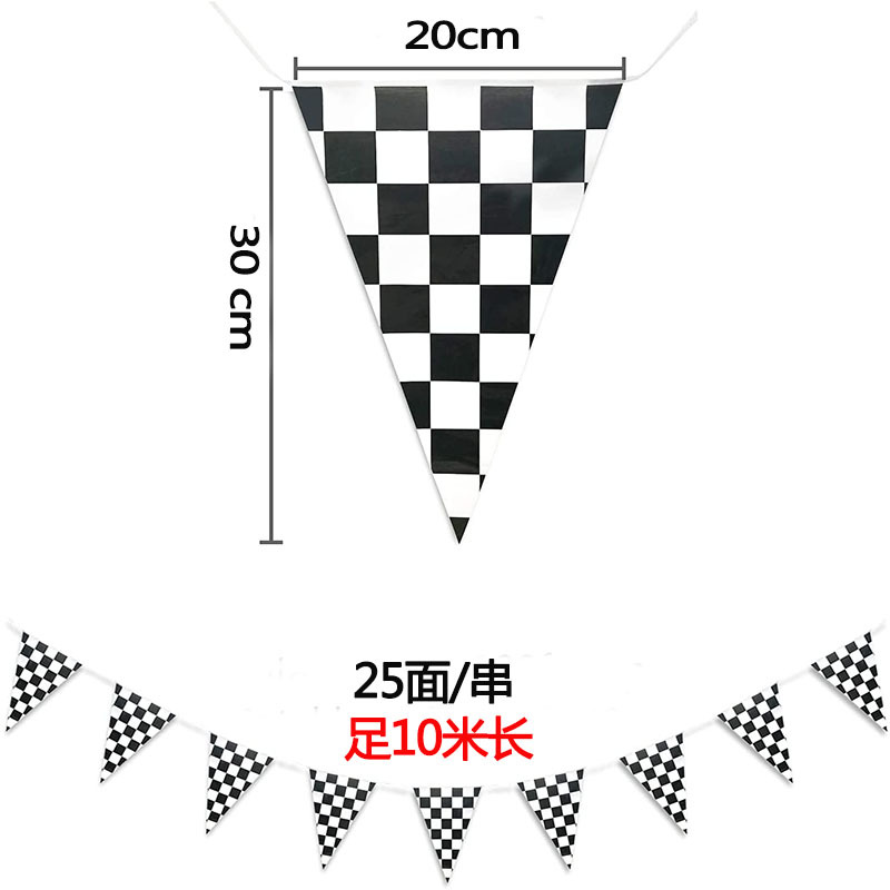 国境を越えたメーカーのポリエステル布両面印刷レーシングパーティーブラックホワイトチェック柄ストリングフラグ三角格子レーシングバナー