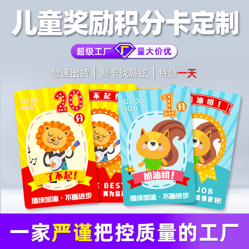 卸売りポイント通貨奨励ポイントカード単両面小学生幼稚園教師表彰奨励カード奨励カード