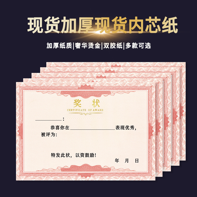 A 4栄誉証明書8k賞状受賞証明書優秀社員授賞金モール内芯会社学校カバー