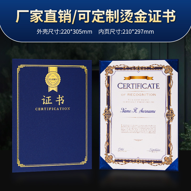 卸売栄誉証書卒業修了証書カバーオーダーメイドカスタム授権書受賞賞賞状カバー
