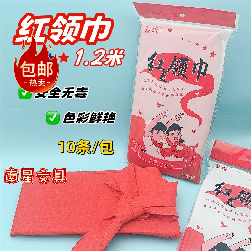 Mai Feng 10 パック 1.2m 小中学生用赤いスカーフ、色あせなし、毛玉なし、学校用赤いスカーフ、卸売、送料無料