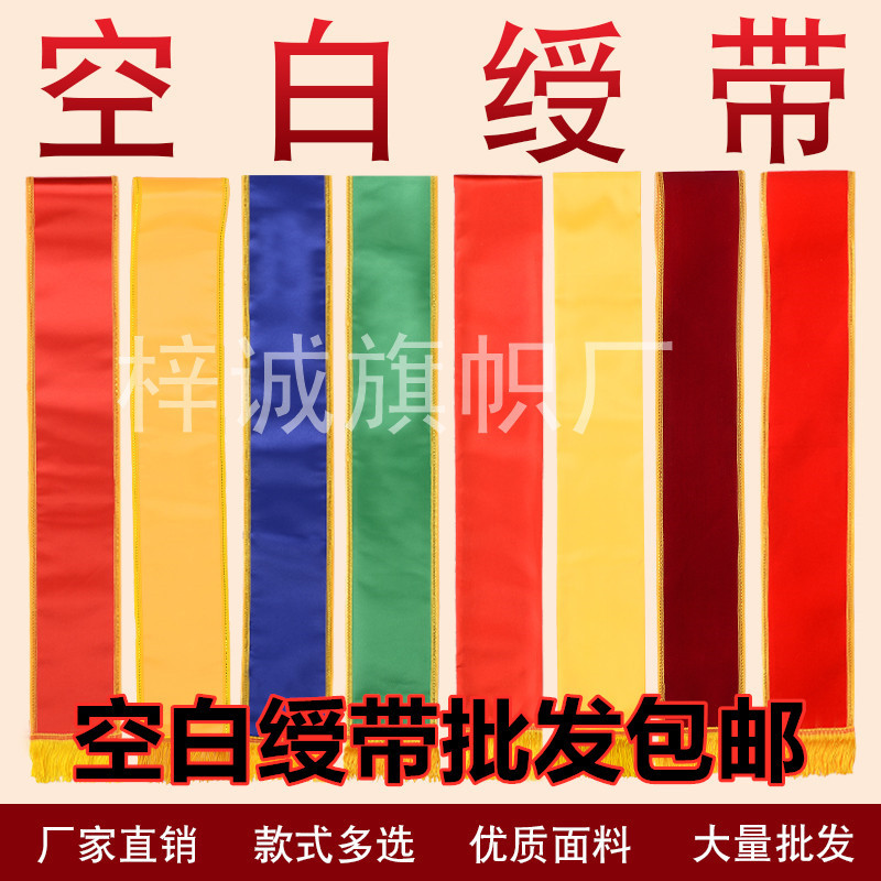空白の功のサテンのリボンの布の2層の厚い植毛の絹織物の空白の礼儀は赤い黄色の迎賓帯の卸売りを持ちます。