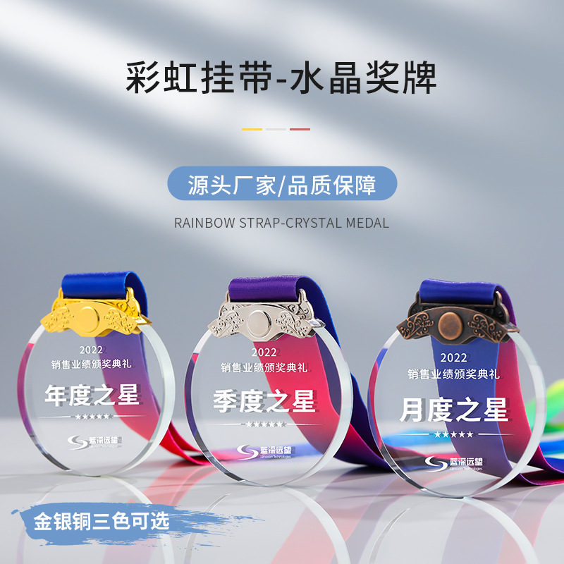 2024新型水晶トロフィー創意金属メダル会社年次総会トロフィー高級大気優秀社員記念