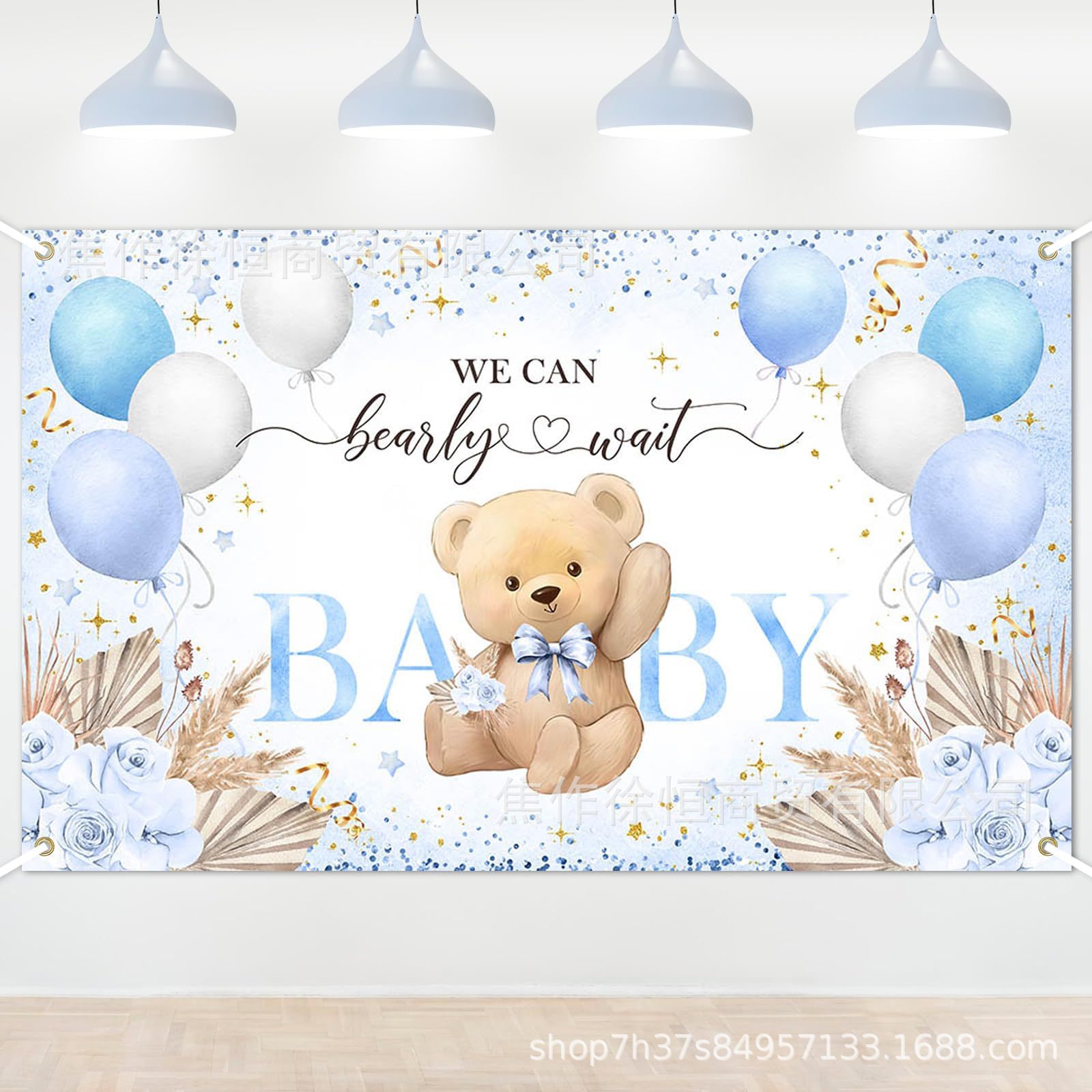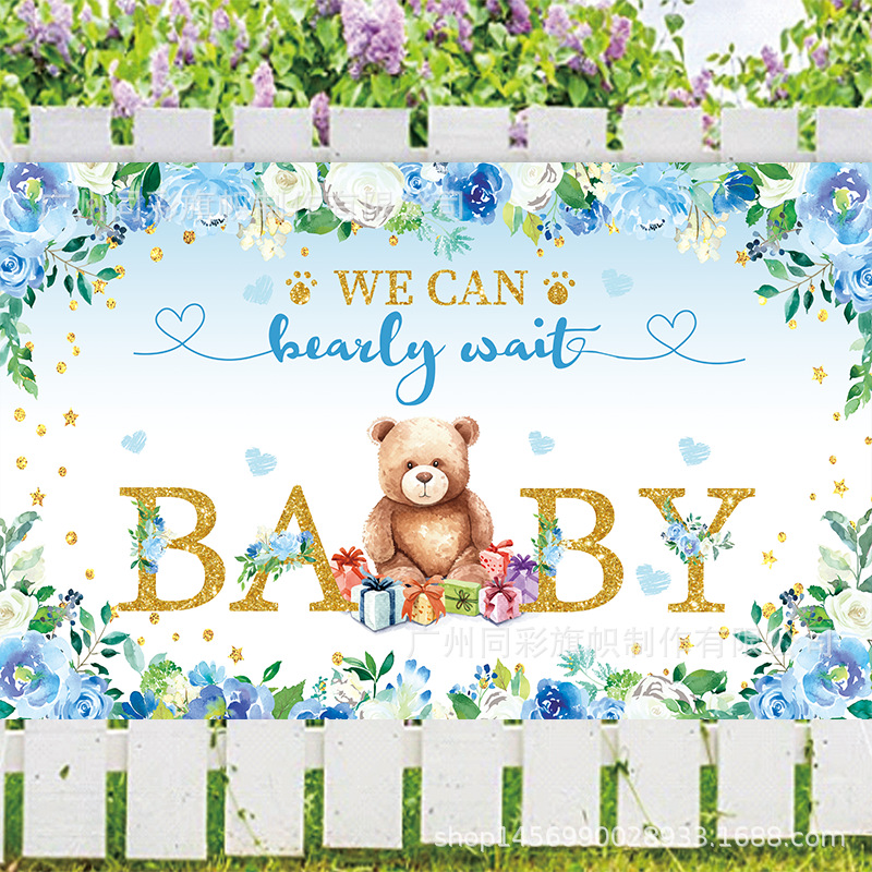 Amazon temu ホット販売ブルーベア誕生日背景布バナー赤ちゃんベビーシャワーパーティー装飾旗