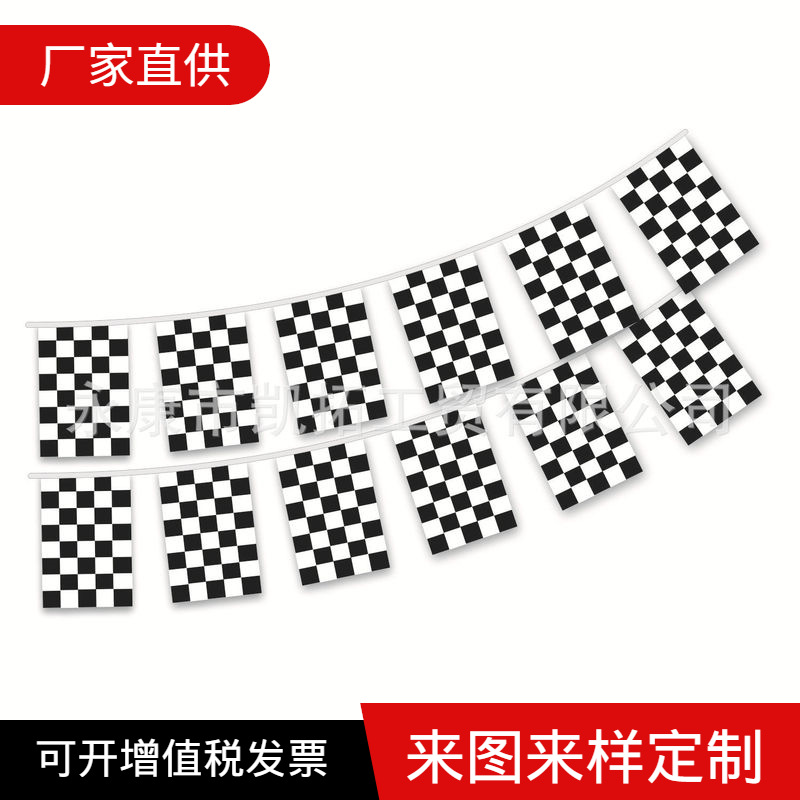 【旗工場】8号14*21レース旗黒白格旗広告祭り装飾黒と白ブロック旗
