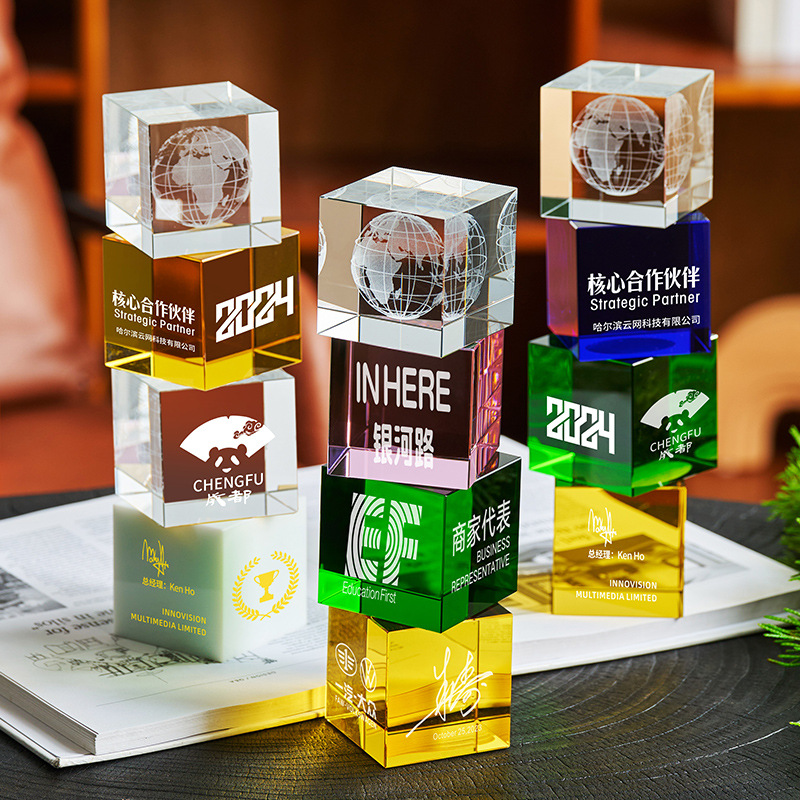 高級金属トロフィー科学技術ルービックキューブ水晶トロフィー会社年次総会社員授賞サプライヤー表彰