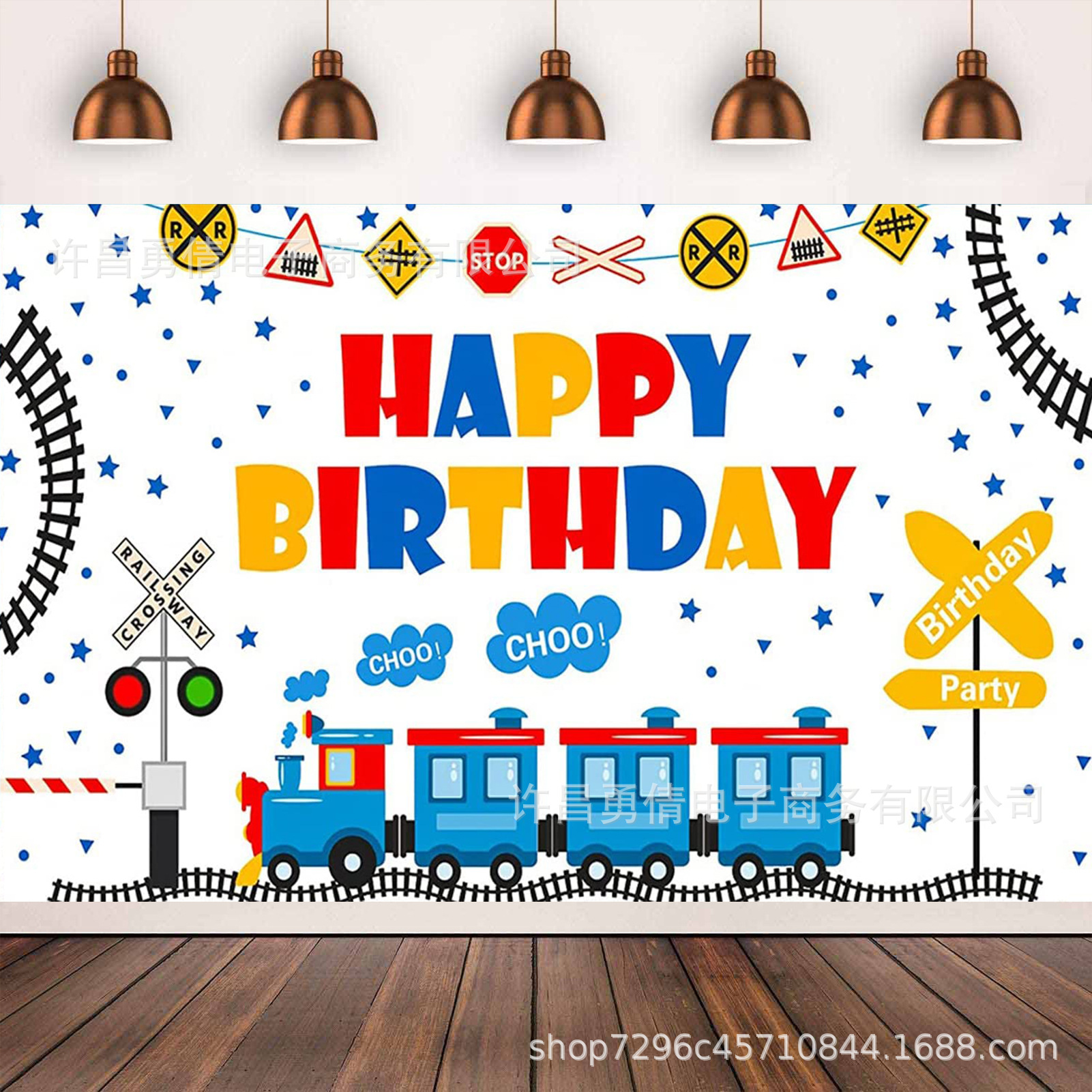 国境を越えたアマゾン列車軌道漫画子供誕生日背景布リボン装飾背景旗布装飾布