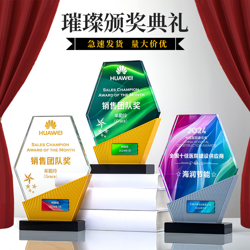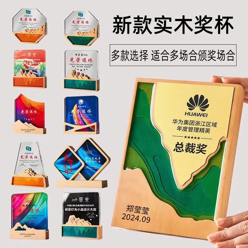 2025新型実木トロフィー木製水晶トロフィー年度会社栄誉授賞優秀社員記念