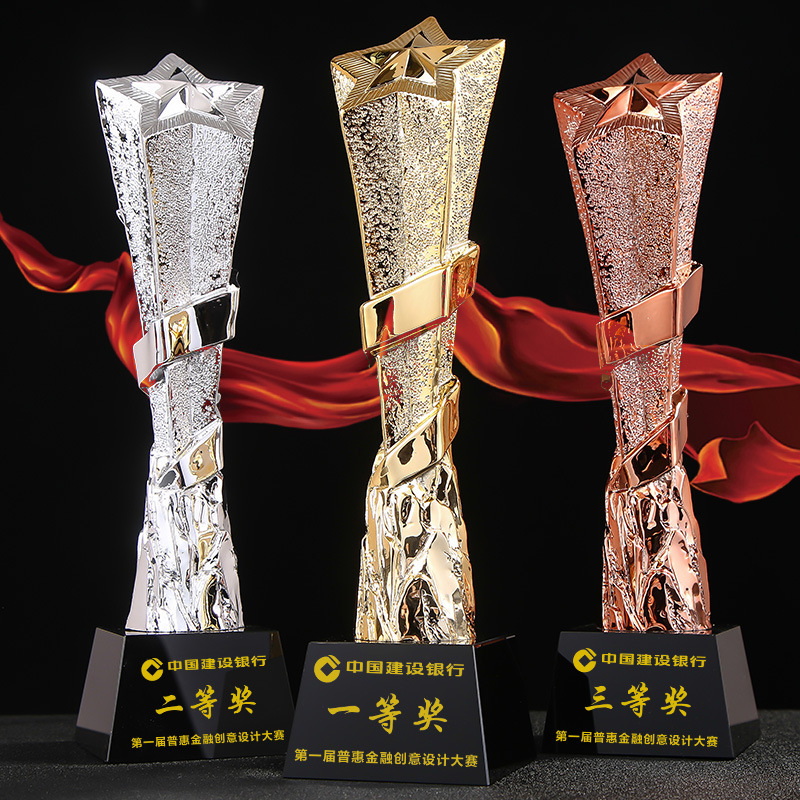 金属トロフィー金銀銅五芒星高級創意月次試合授賞年度優秀社員記念