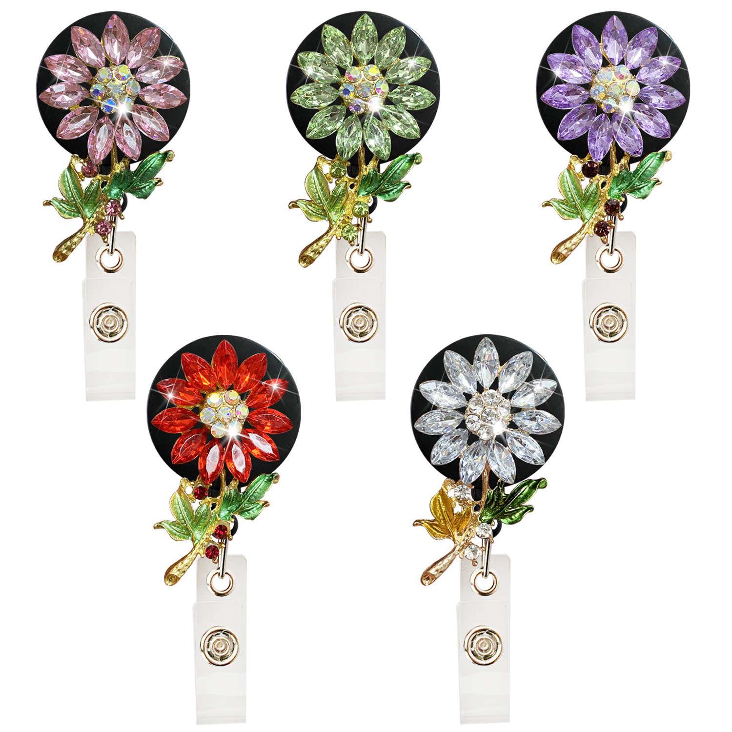 水晶の太陽の花の伸縮しやすいバックルの証明書のハブの回転のワニの胸のカードのカバーの伸縮のバックル