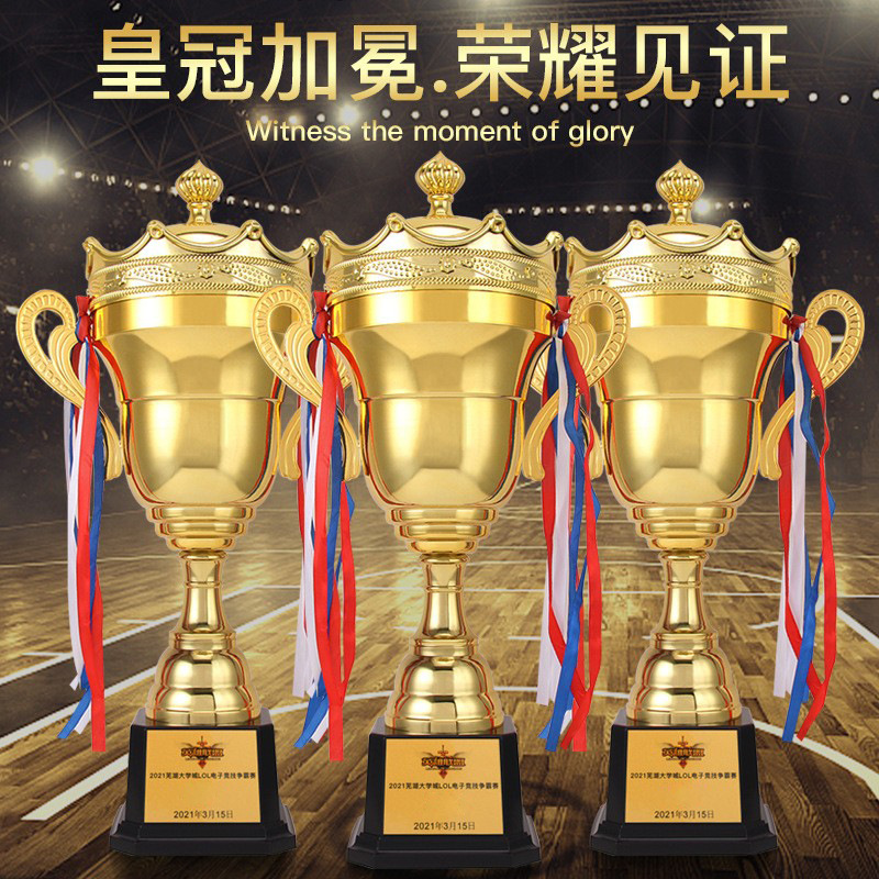 金属クラウン通用大トロフィーバスケットボールサッカー大会優勝合金メッキトロフィー両耳蓋付き金杯