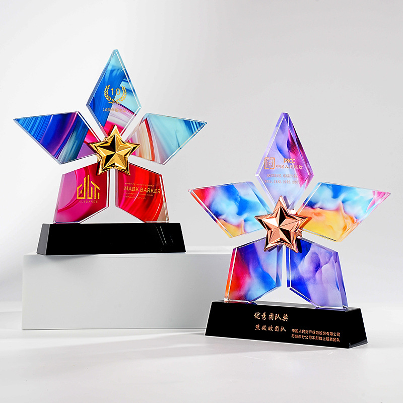 2024 新しいメタルクリエイティブカラー印刷五芒星クリスタルトロフィーハイエンド雰囲気名誉メダル彫刻