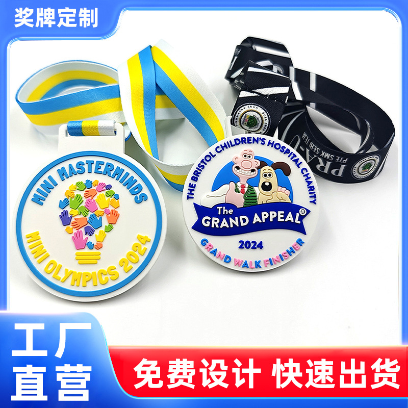 絵付きの柔らかいプラスチックメダルとリボン、カスタマイズされた子供クラブのスポーツゲームPVCメダル