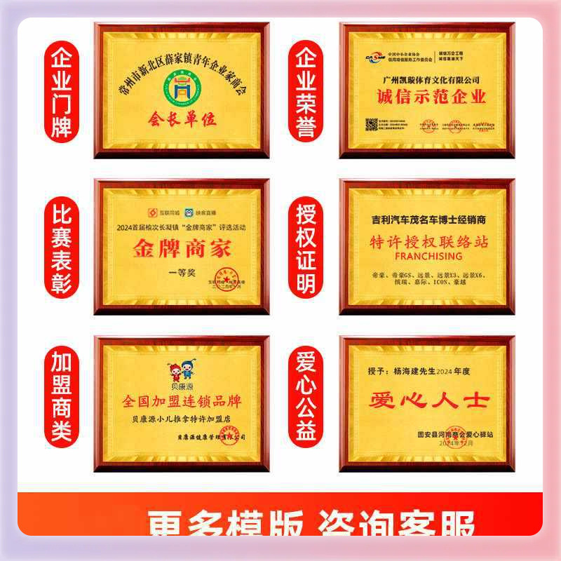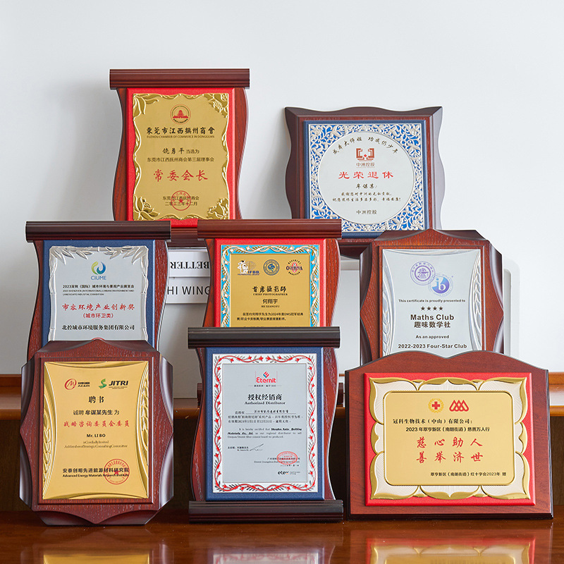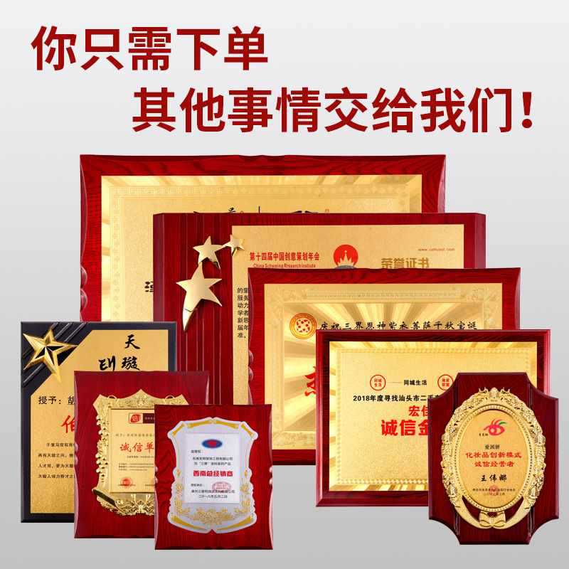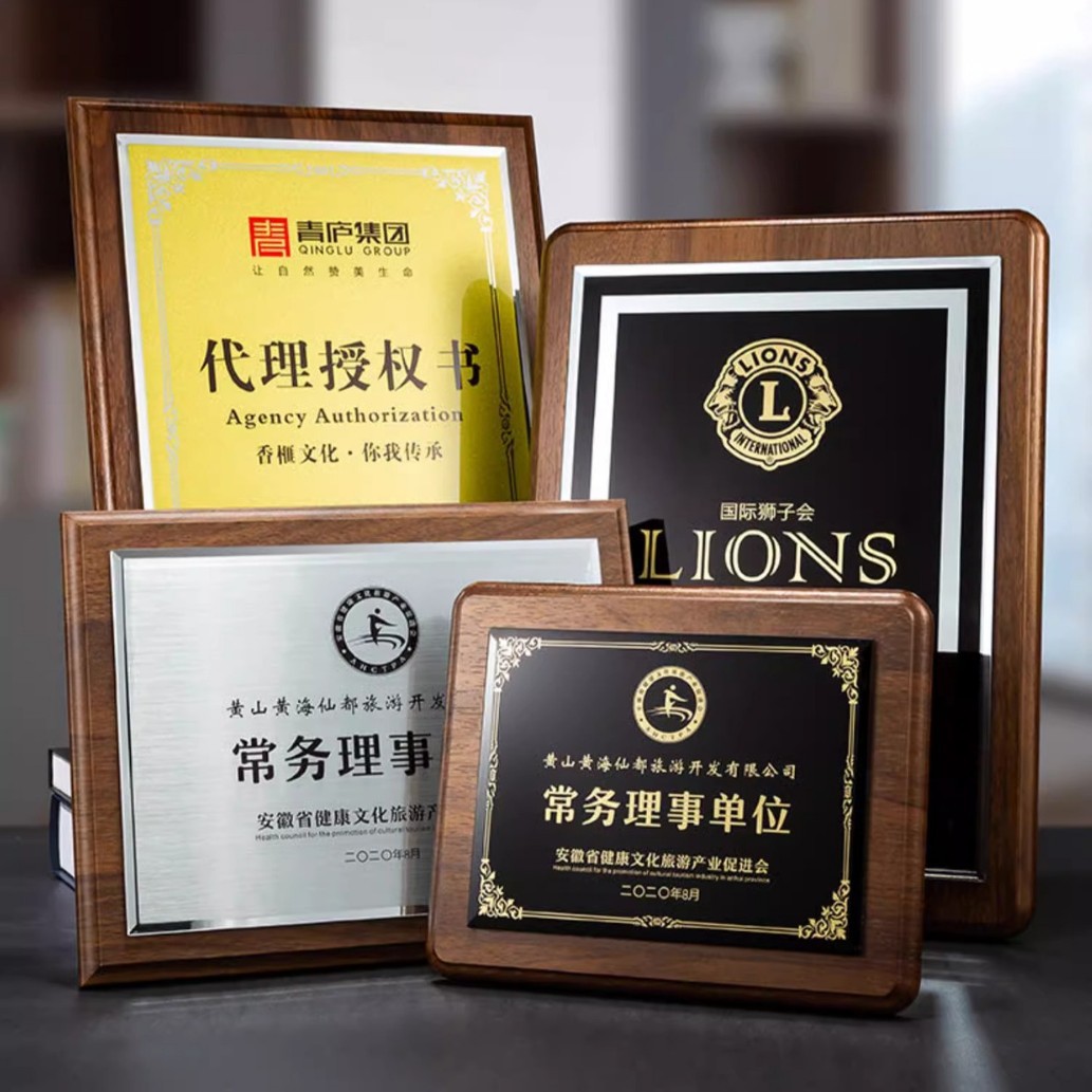 ✅ オーダーメイド名誉認定プレート、代理店フランチャイズプラーク、オーダーメイド金箔メダル、木製木製トレイ賞状