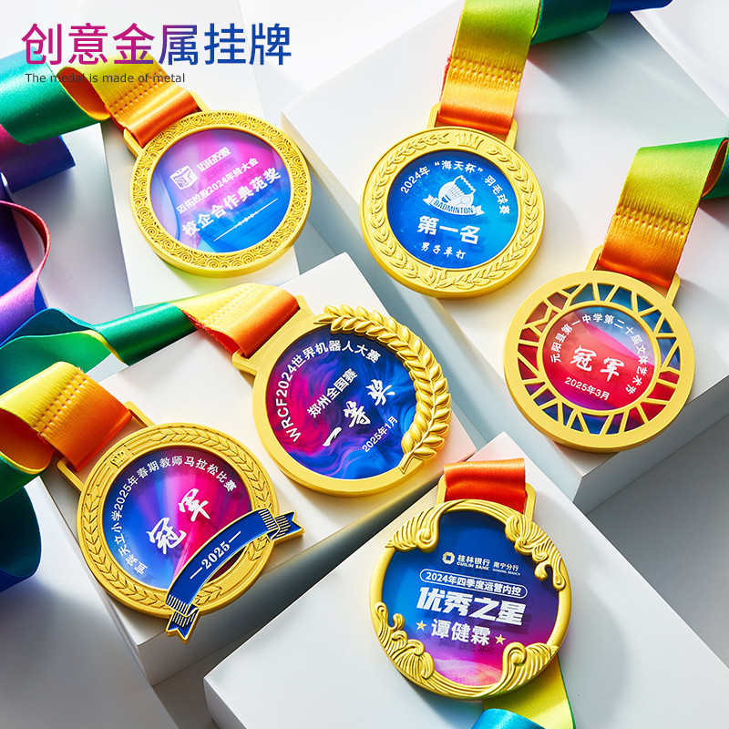 クリスタルカラープリントメダルタグマラソン競技会金メダル学生サッカーメタルタグ競技メダル