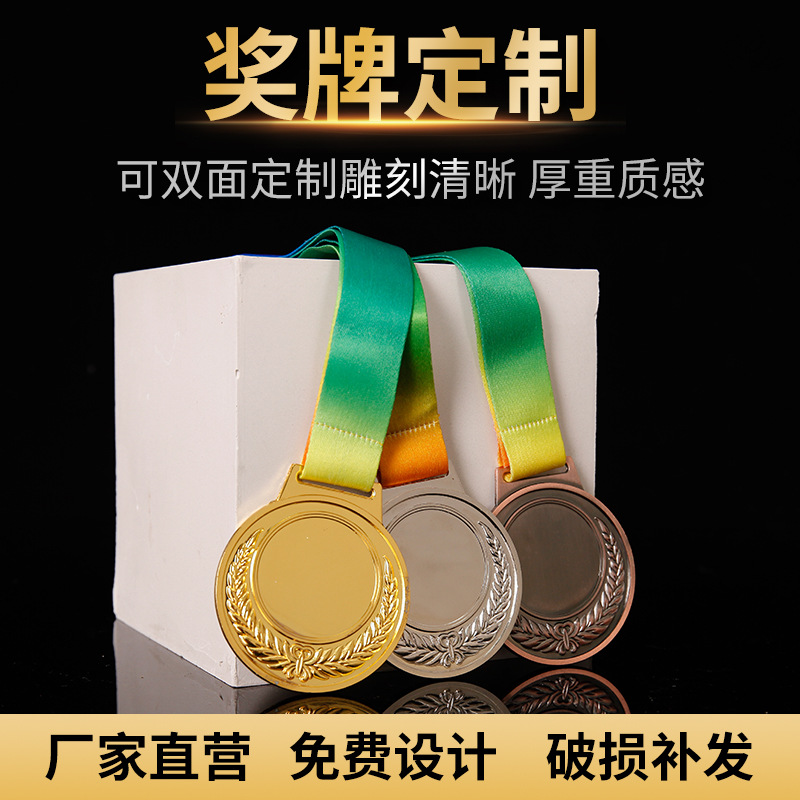 現物通用カスタムメダル麦穂掛胸メダル両面金箔印刷バスケットボールサッカー活動メダル
