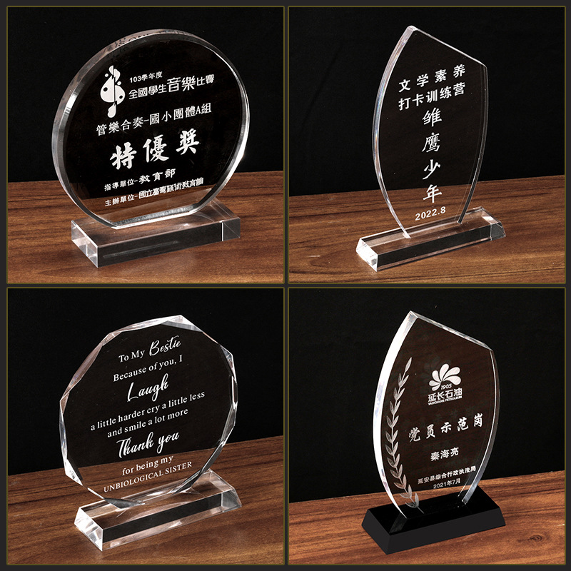 アクリルメダル水晶トロフィー創意トロフィー授権牌ガラス従業員授賞記念トロフィー賞座制作