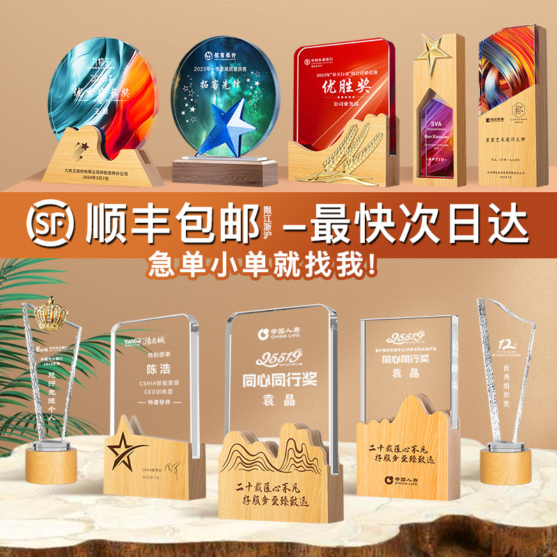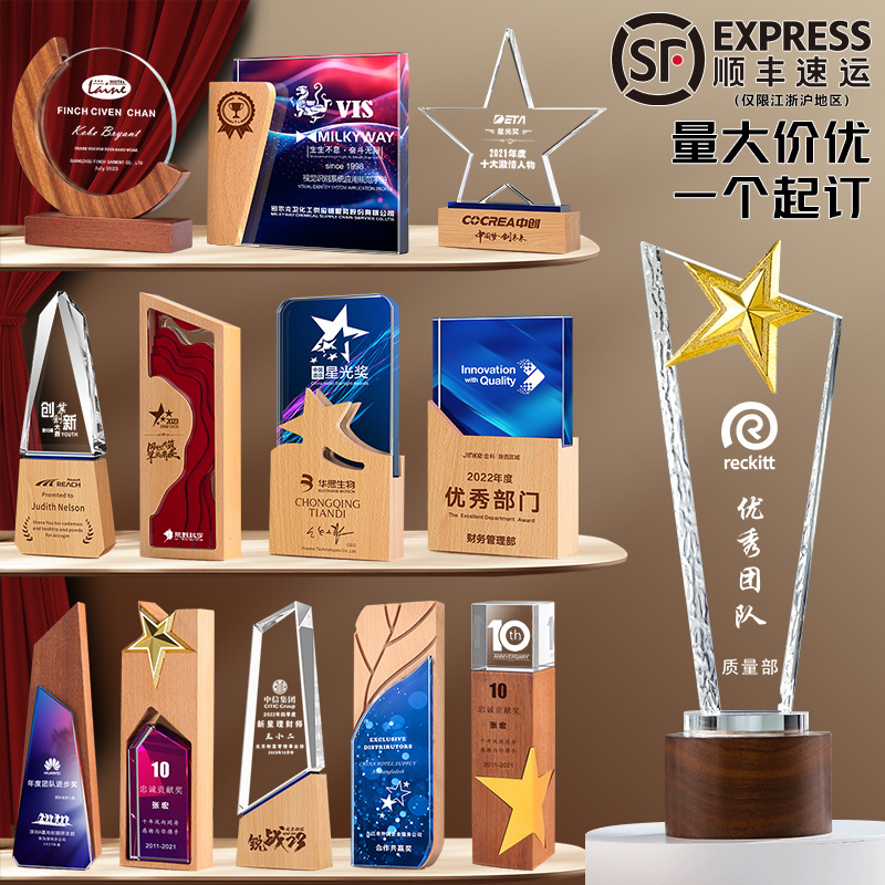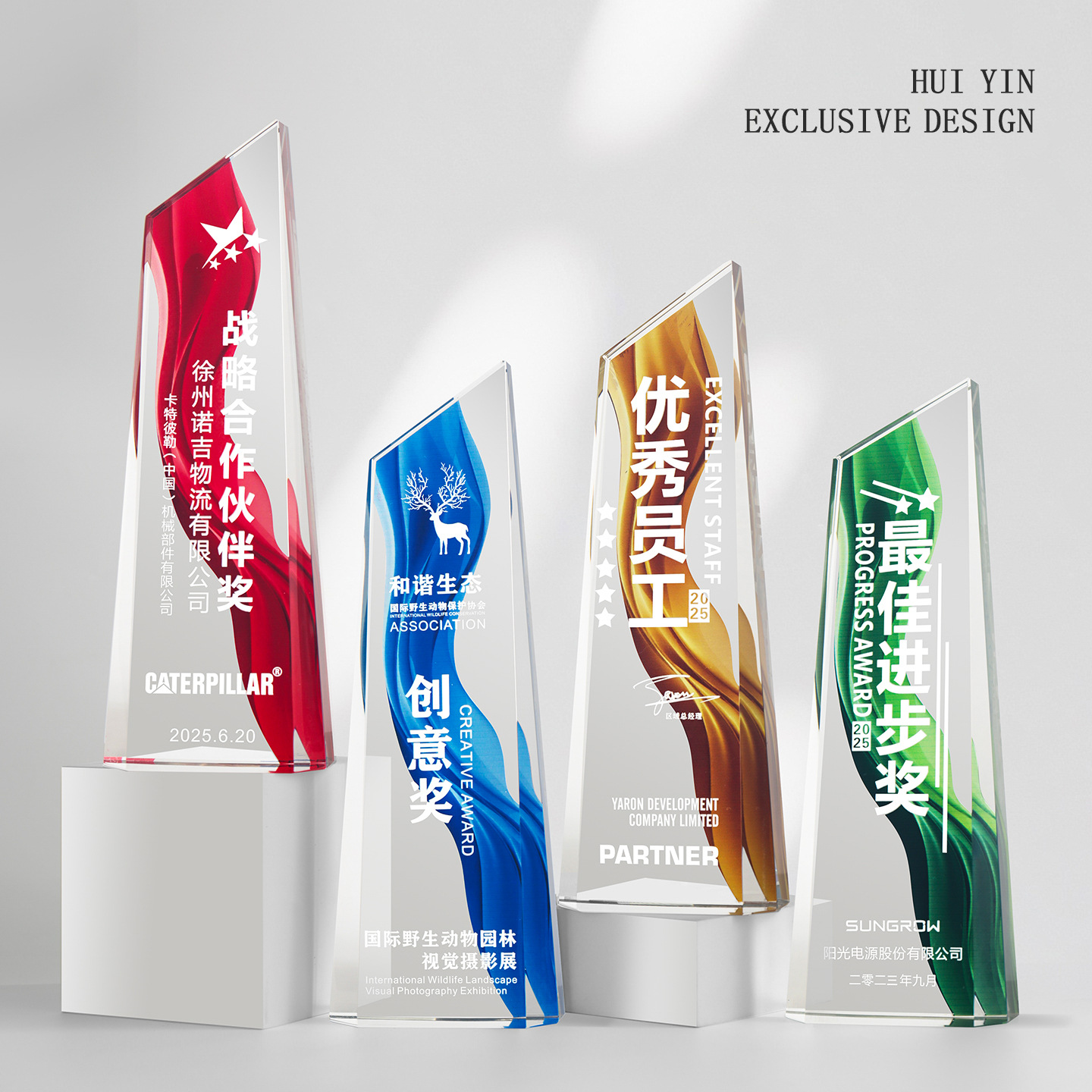 カラー水晶トロフィー制作創意トロフィー彫刻大気年会授賞優秀社員記念品工場