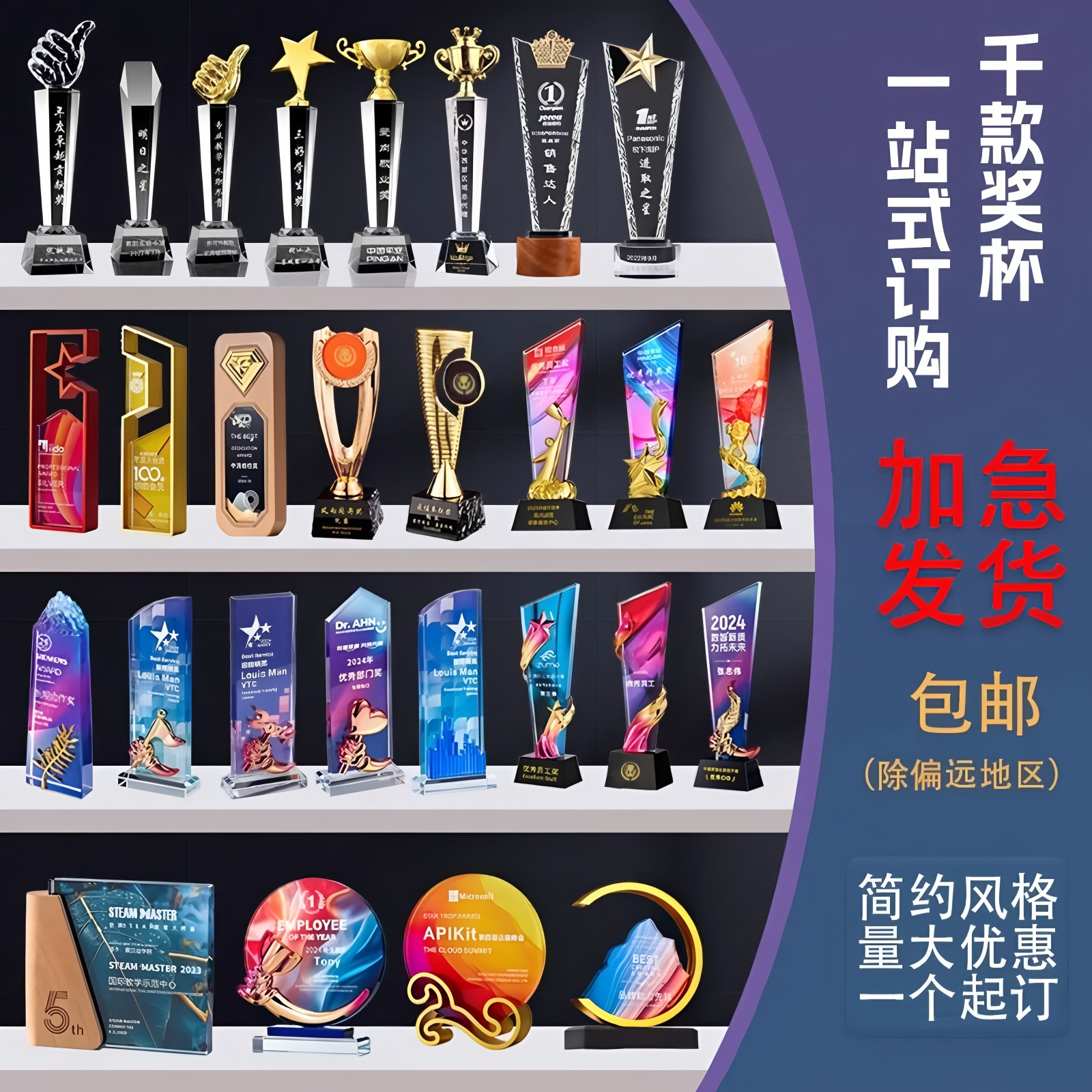 クリスタルトロフィーカスタム優秀社員年次総会栄誉授賞樹脂金属トロフィーカラー印刷試合記念メダル