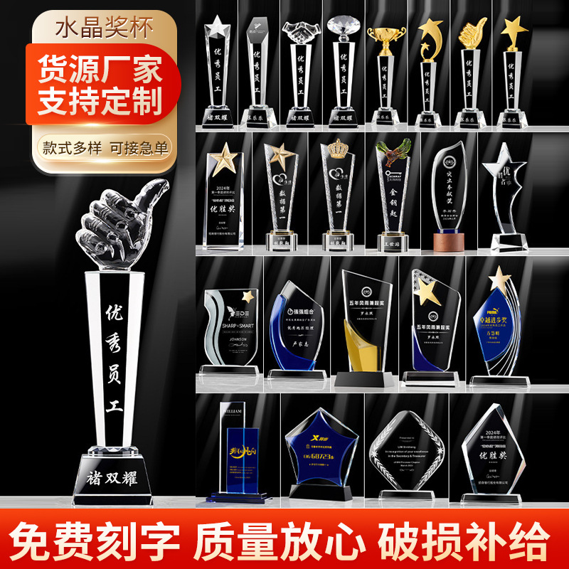 クリスタルトロフィー 優秀従業員賞 会社年次総会表彰状 金属樹脂製 子供用親指認定牌 卸売