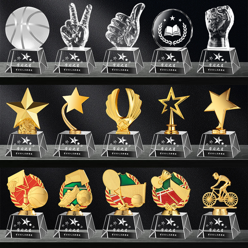 クリスタルトロフィー金属カラー印刷メダル創意優秀従業員栄誉児童バスケットボール運動会試合嘉授賞