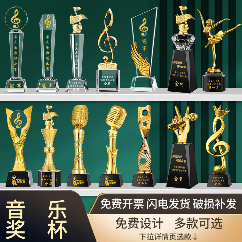 クリスタルトロフィー音楽音符樹脂トロフィーマイク金属トロフィー訓練機構イベント授賞トロフィー