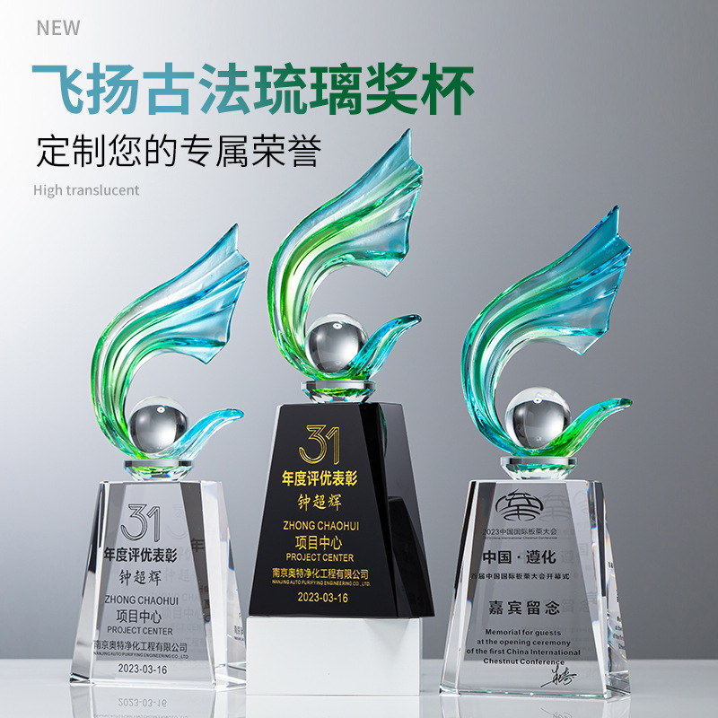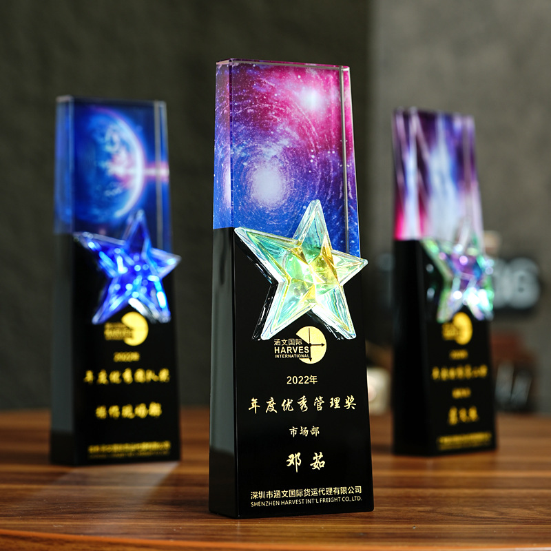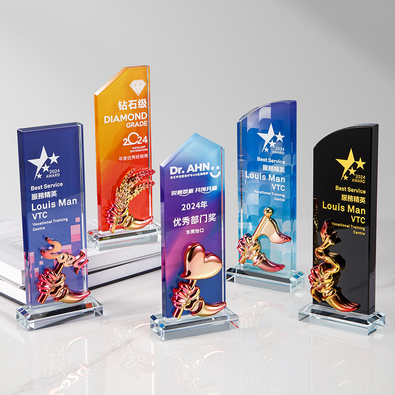 新しいトロフィー クリスタルトロフィー 彫刻入り記念品 優秀社員賞メダル 年次総会 カラー印刷