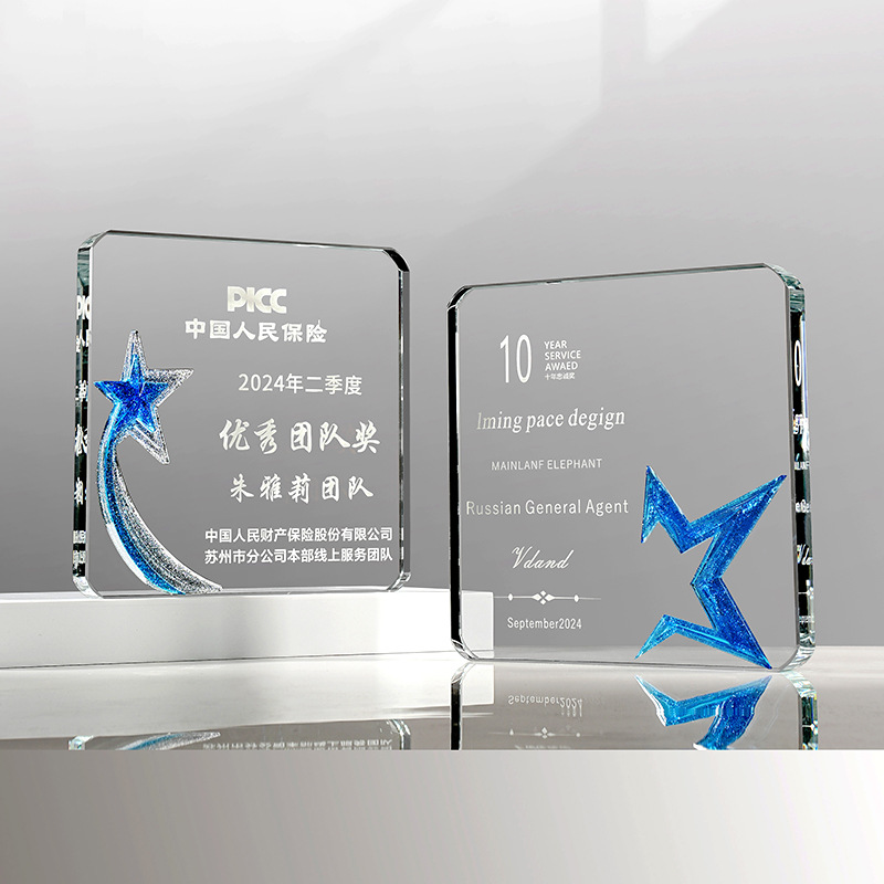 ガラストロフィー制作デザインクリエイティブクリスタルカラー印刷名誉退職記念品優秀従業員賞カップ卸売